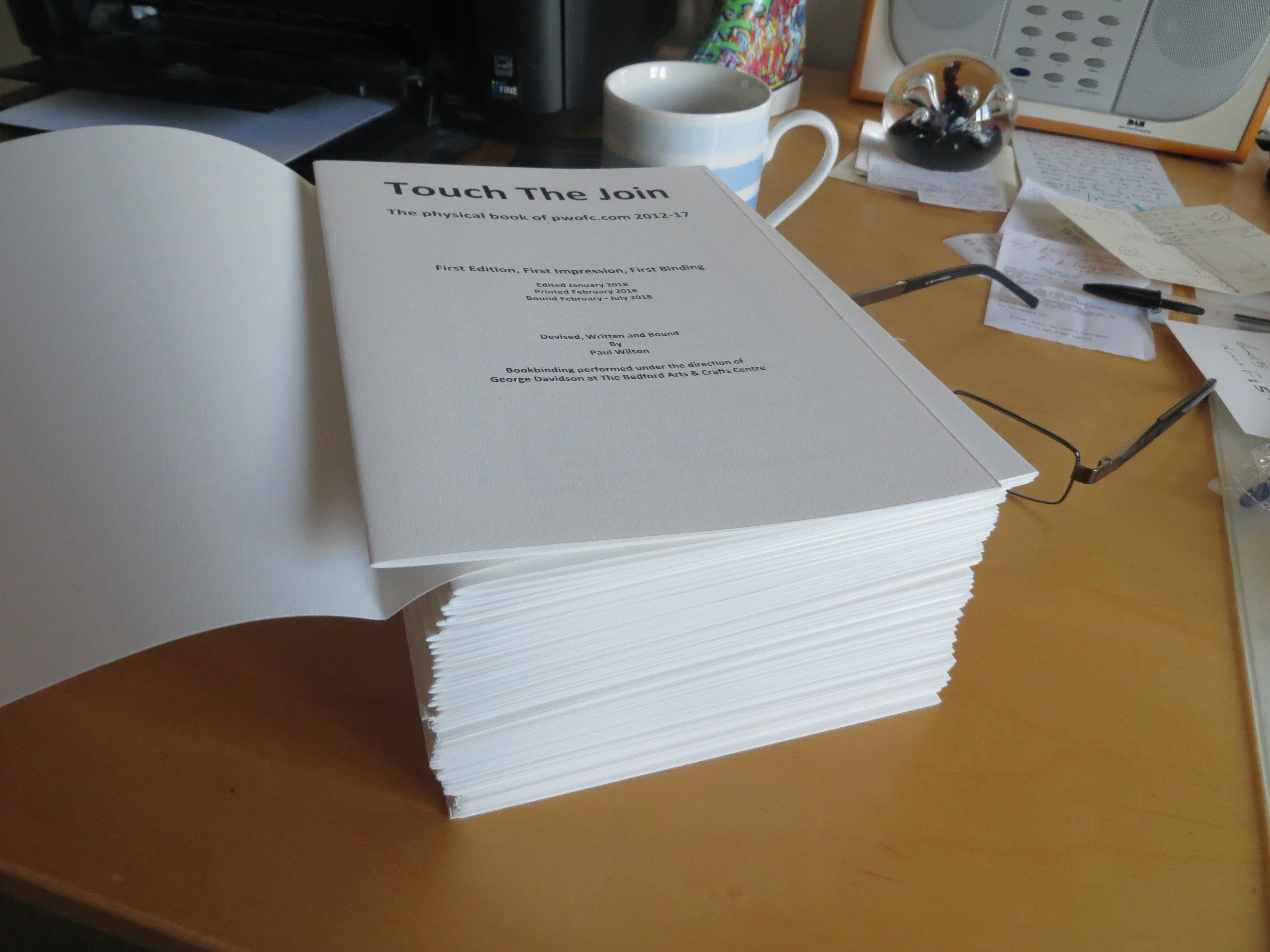 Now that the content of the book has been put to bed and the focus has turned to bookbinding activities, it seems a good moment to reflect on whether this attempt to replicate a web site in book form has worked or not. First, though, it’s important to be clear about the following differences between the pwofc.com site and most other web sites: